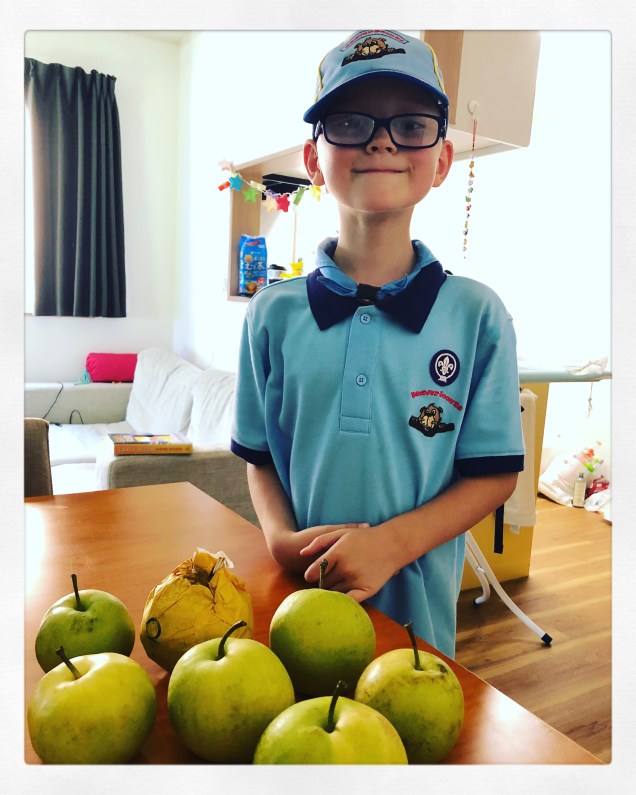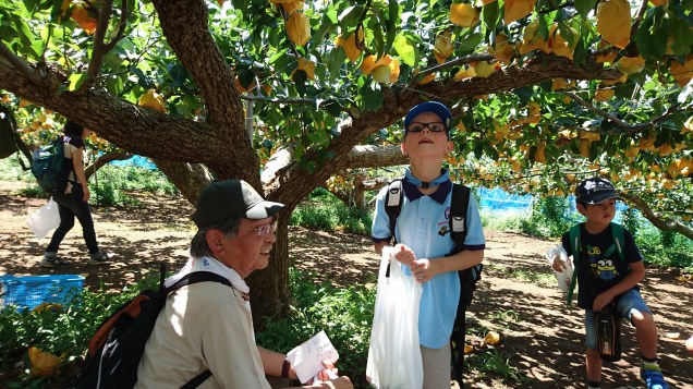 His leader sent us some photos and told us that G had been helping the shorter Beavers to pick their Asian Pears.